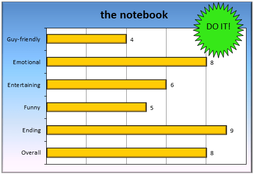 Your woman will love this movie. You will likely find it bearable. There is a high dose of drama, and overplayed emotion. Fortunately, the theme is not entirely nebulous. There is a point to the story, and it conveys a meaningful purpose. The indecisive main character struggles between a star-crossed summer love and a more privileged, respectable fiancée. Ryan Gosling gets it done and wins back the girl by doing what men should do: growing a beard and building something with his bare hands. The movie frequently crosses the line from bearable to sappy/corny/ridiculous but is balanced by good acting and a believable storyline. You will like it, but you will not want to admit it.