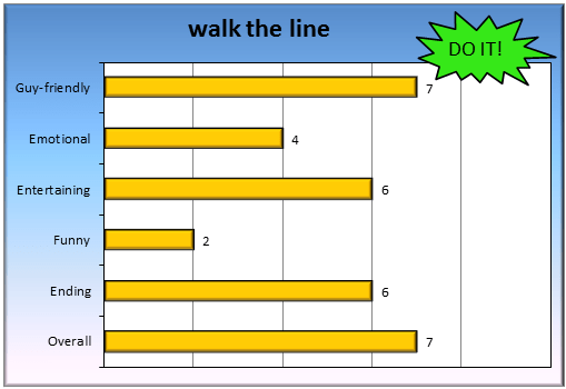 The story is about one of the toughest, deepest, coolest guys around. How could it not be good? It is done very well. The cast makes the story interesting, but real. The soundtrack is killer. If you like Johnny Cash, even a little bit, then you will love this movie. If you aren’t interested in Cash, then you still might like this one.