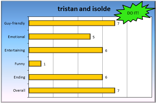 This can only loosely be considered a chick flick. There is a ton of action, swords, blood, etc., but just enough romance and emotion to fit into the category. The story is entertaining, the action is intense, and the love story is bearable. This is another example of a movie that you will like, but may not necessarily score you any points with your chick. Enjoy.
