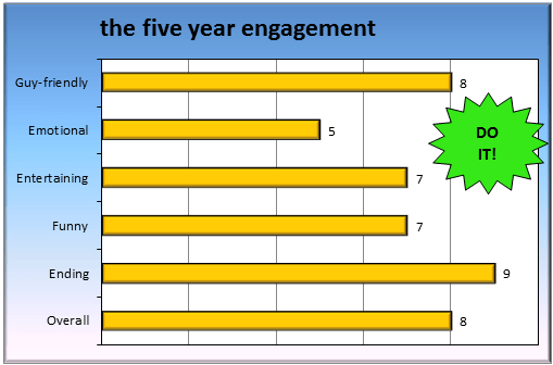 This movie is very funny, and really entertaining. The theme is easy to relate to and the story is meaningful. We follow the couple through the transition of “I really want to be with this person!” to ” Do I really want to be with this person?”. The story moves along at a pace that won’t bore you. The situations that the couple faces are pretty realistic (for the most part). The characters are likeable, and the actors are great. There is a notable difference in hotness between Emily Blunt (wow!) and Jason Segel (how?), not unlike many couples in real life. If you have ever asked “How is he with her?” then you know what I mean.